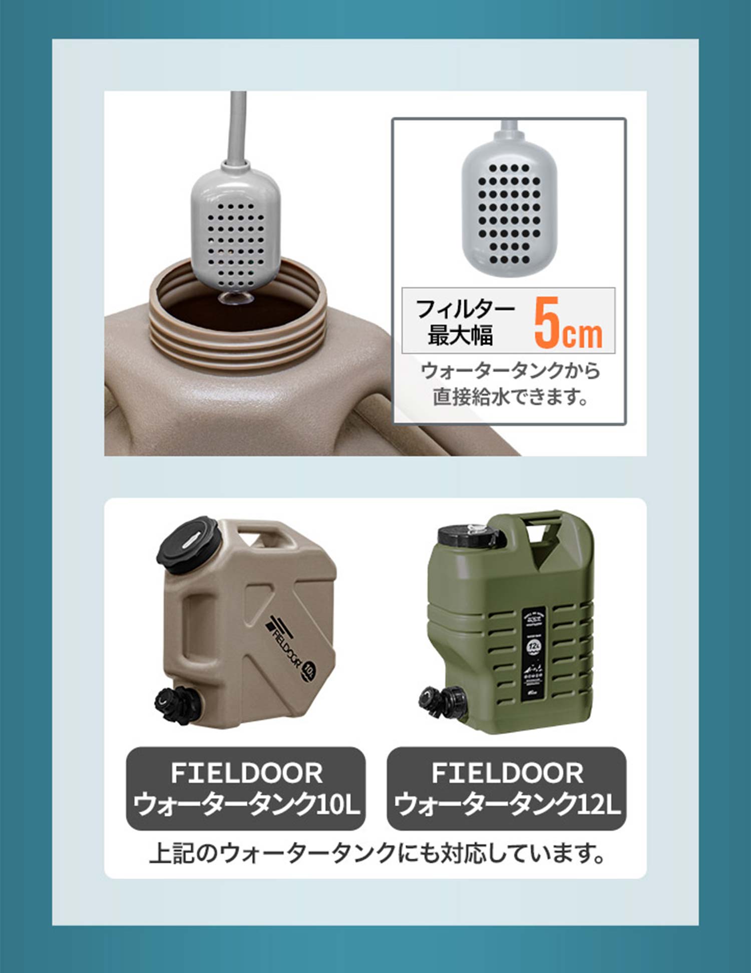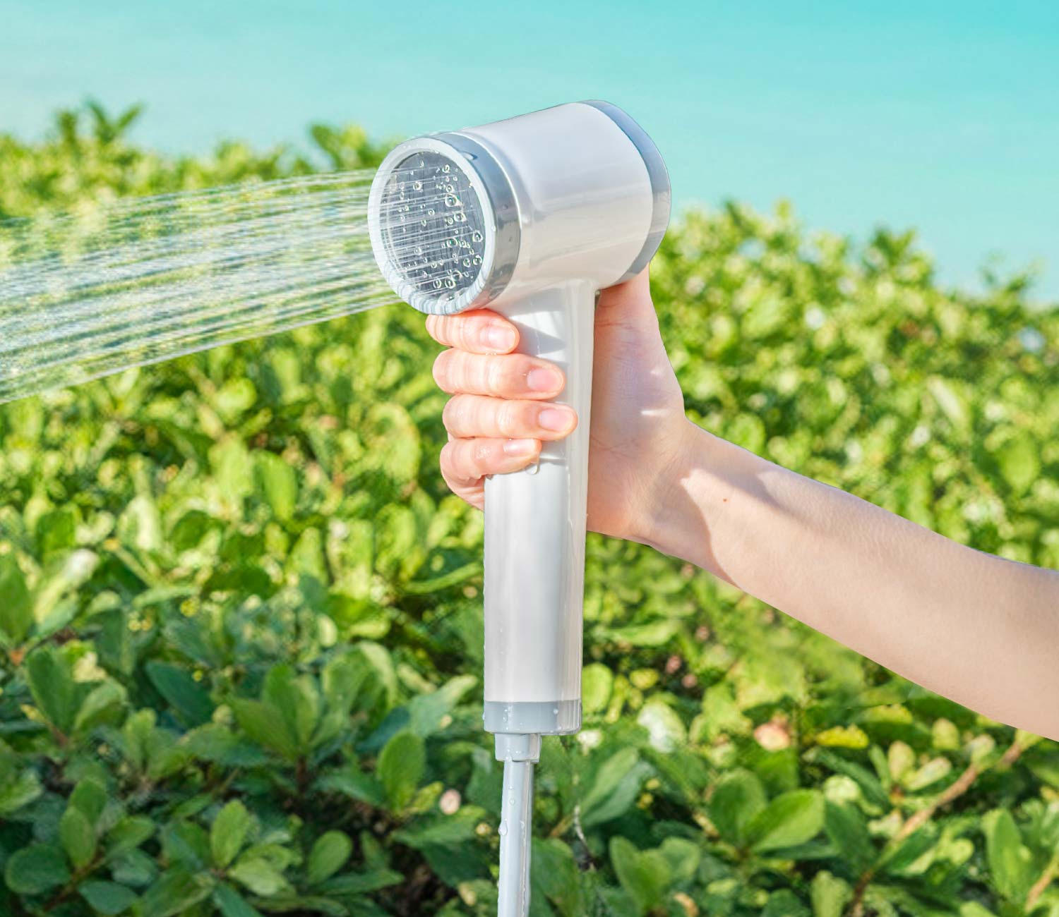 海でのレジャーの後などに、どこでも手軽に体を洗えます。ペットのシャンプーや災害時のシャワーなど、様々なシーンで活躍します。