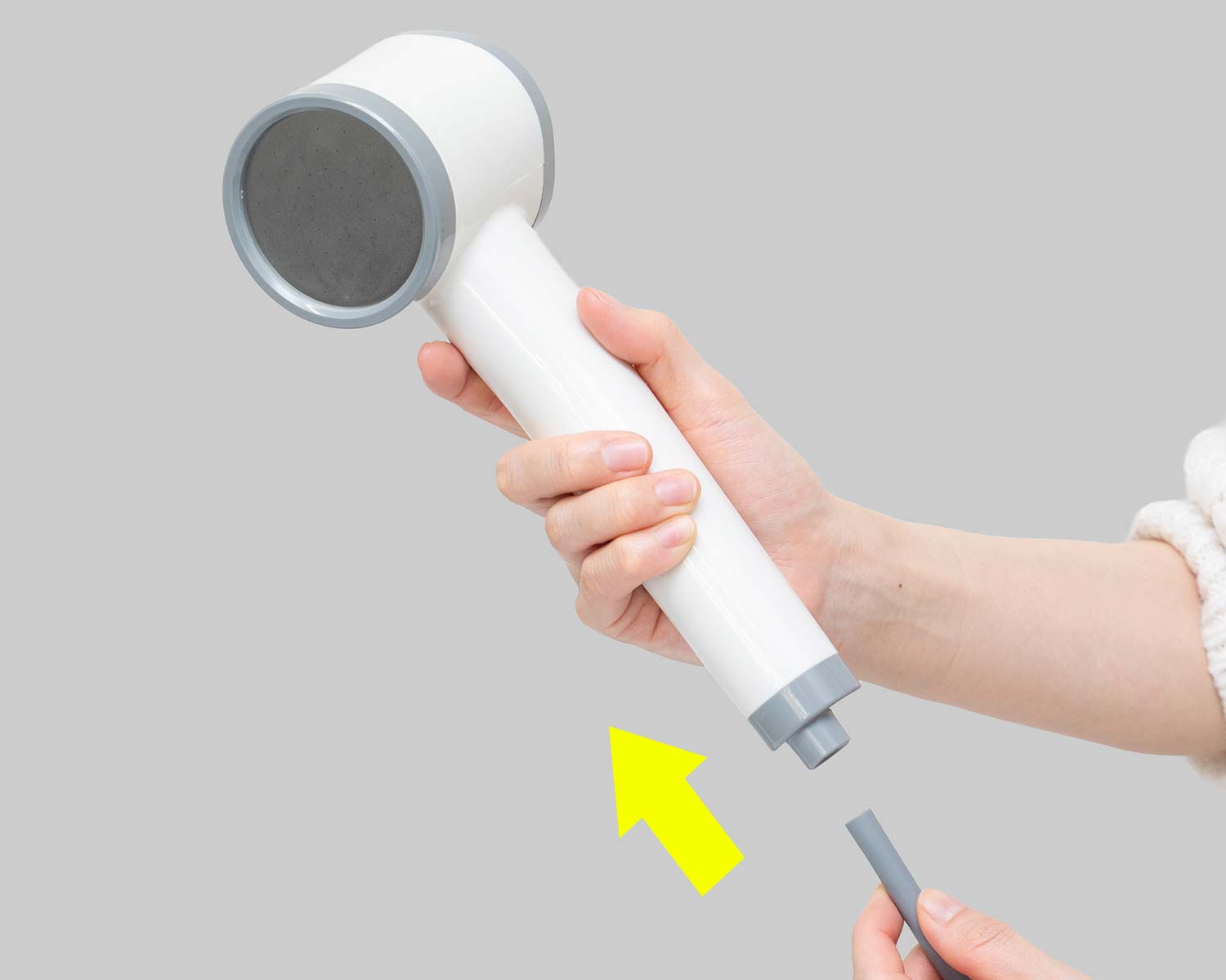 シャワーヘッドとホースを繋ぎます。