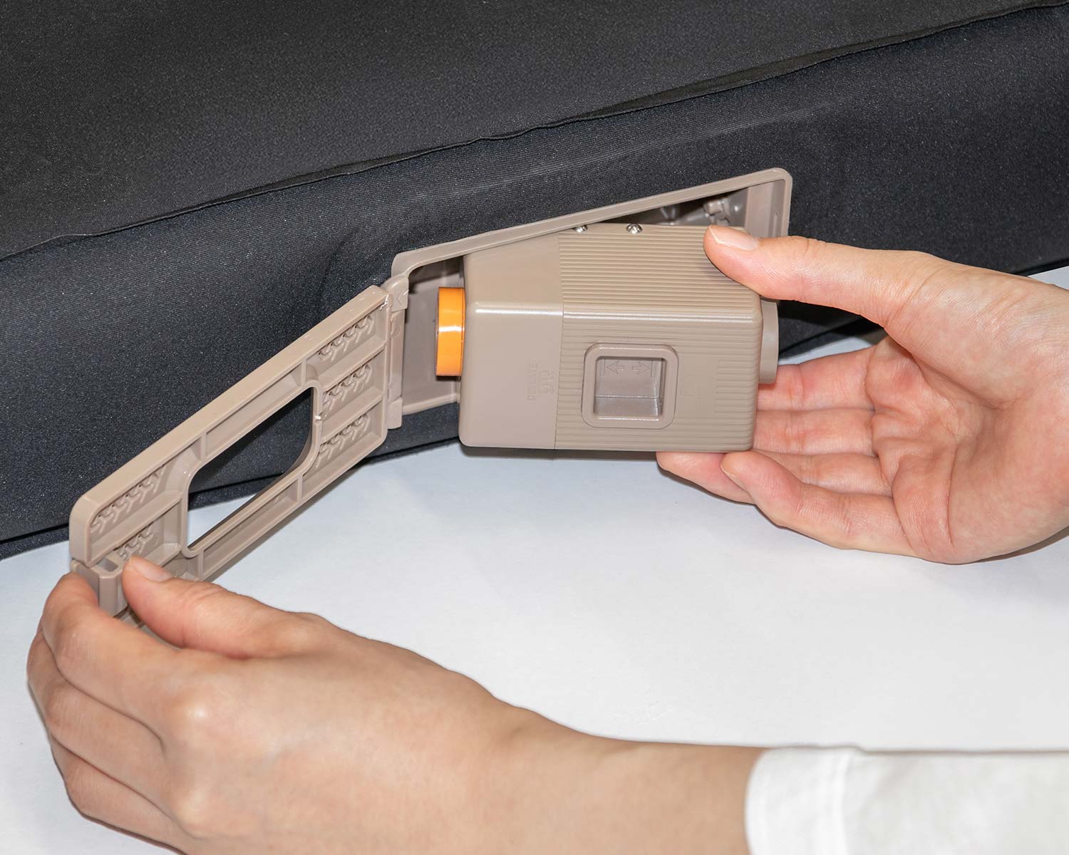 電動ポンプは取り外して単体でも使用できます。ポンプだけを持ち運べば、アウトドアやレジャーでも、様々なアイテムの空気の充填・排出が手軽に行えます。