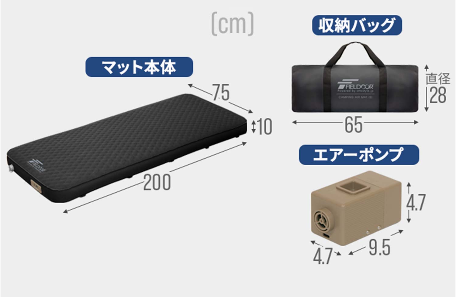 高密度極厚ウレタン10cmで快適に休めるキャンプマットの決定版。長さは200cm、 幅はシングルサイズで75cm、ダブルサイズで132cm、ゆったりサイズのマットです。 内蔵電動ポンプ付きでスピーディーに使用でき、10cmの厚さで地面の凸凹を感じることなく、ご自宅のベッドのような寝心地を楽しめます。