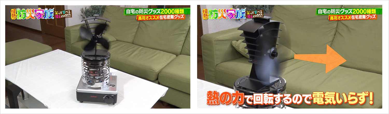 BS12 新感覚の防災情報バラエティ 「情熱!防災家族 ~笑って学べる「備え」の時間~」に、弊社のストーブファンが紹介されました。