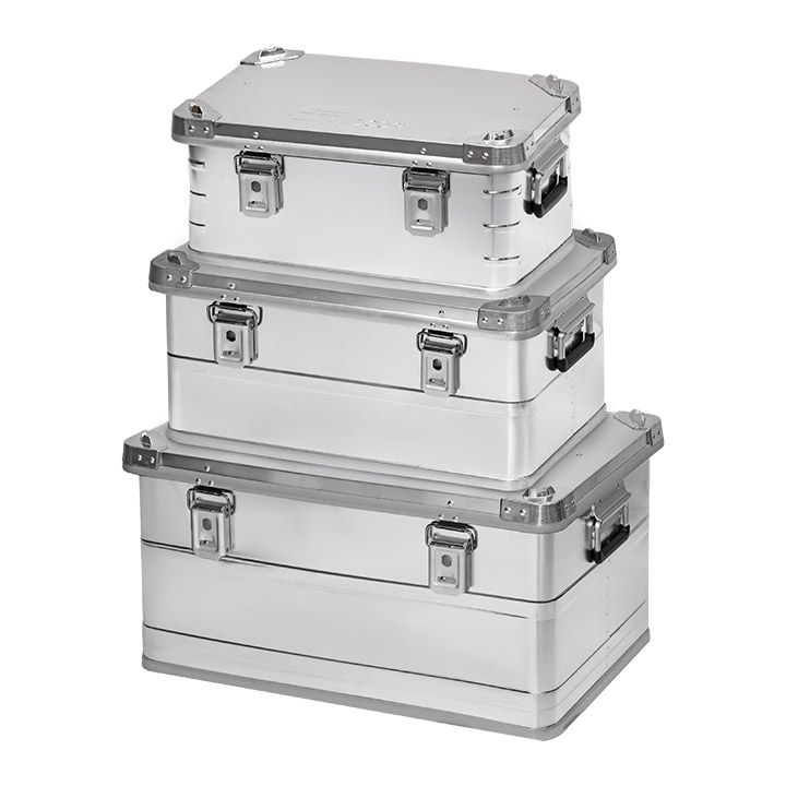 キャンプギアをすっきりまとめることができる、クラシカルなアルミコンテナボックス。