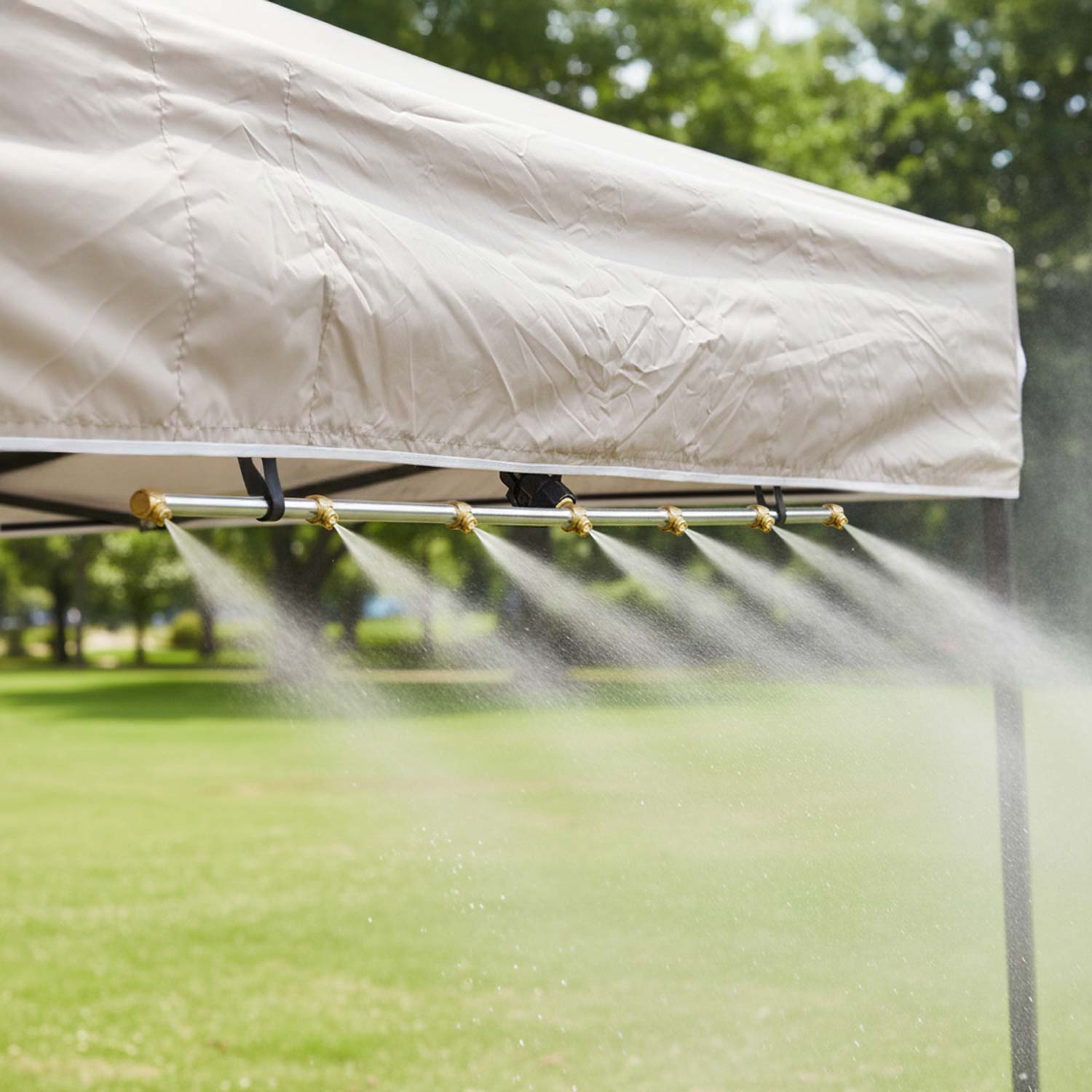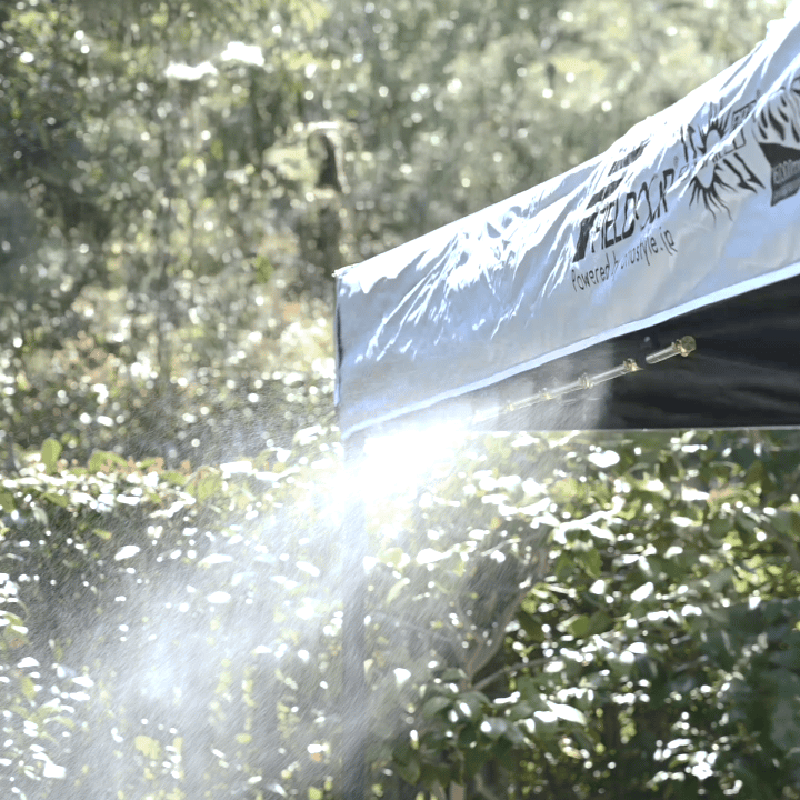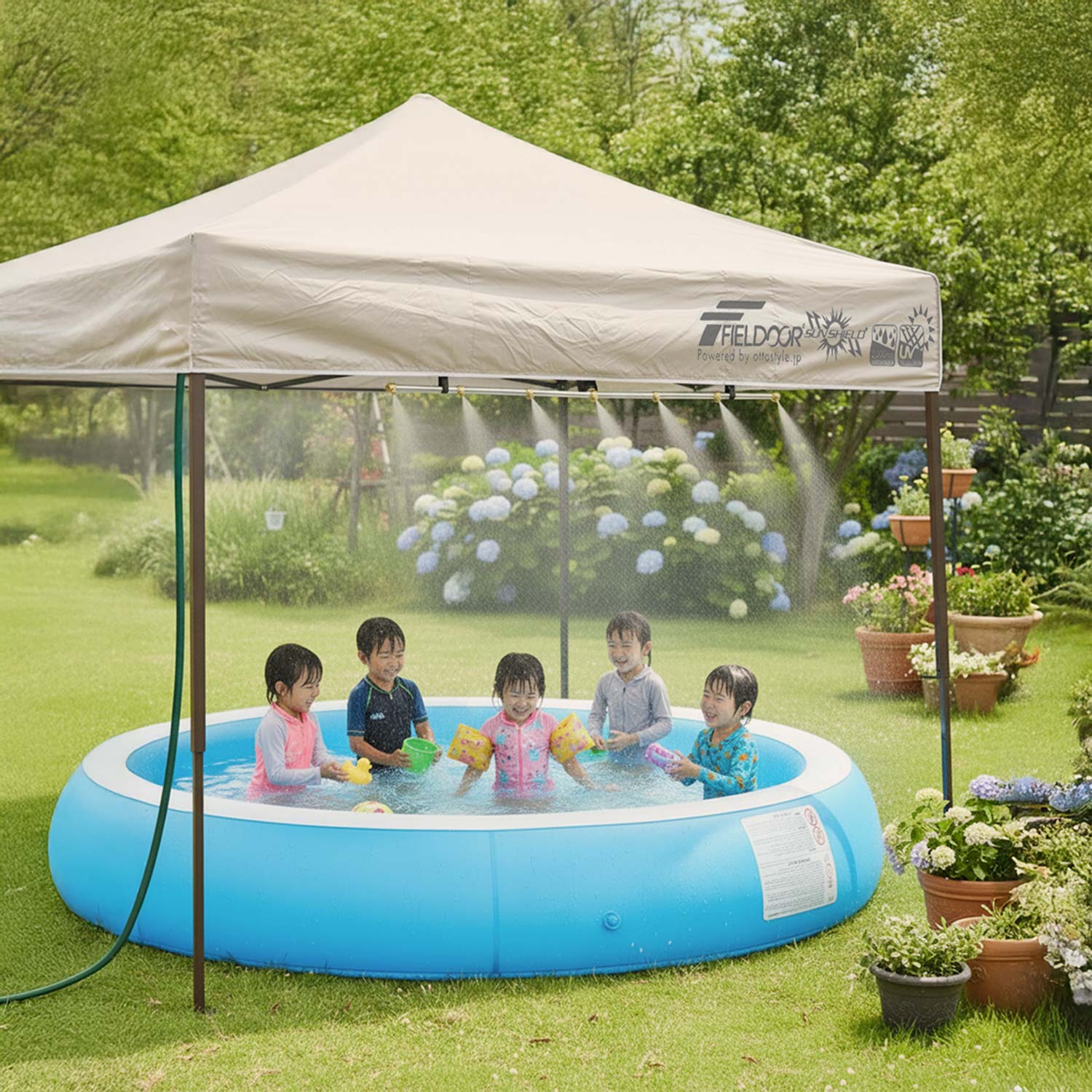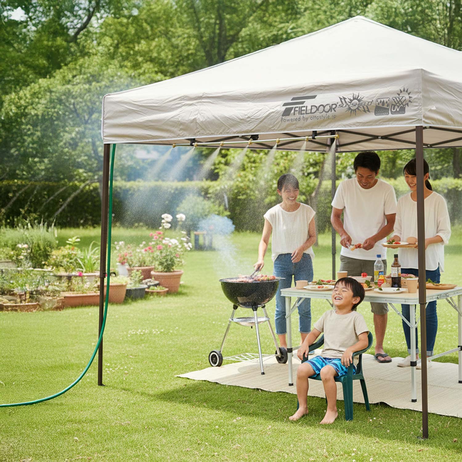 微細なミストが周囲の温度を下げてくれる、タープテント専用のミストシャワーです。